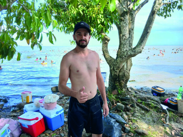 Banhista dá exemplo ao recolher o próprio lixo no balneário da Lagoa