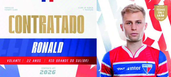 Patrulhense Ronald Falkoski é contratado pelo Fortaleza até o fim de 2026
