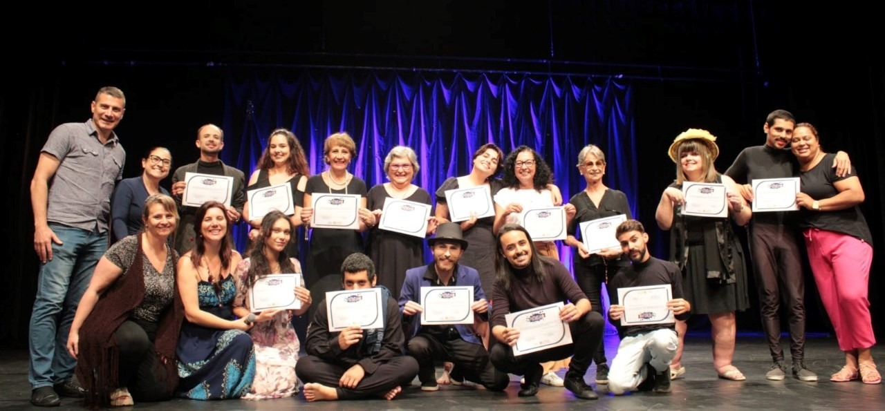 Do Mágico de Oz às crônicas de Luis Fernando Verissimo, mais de 700 pessoas assistiram as apresentações das oficinas de Artes Cênicas, na terça-feira (6/12), no Teatro do Sesc Gravataí. O evento, que ocorreu nas modalidades infantil, infantojuvenil, juvenil e adulto, foi uma realização da Secretaria Municipal da Cultura, Esporte e Lazer (SMCEL) por meio das Oficinas de Arte desenvolvidas durante o ano todo.